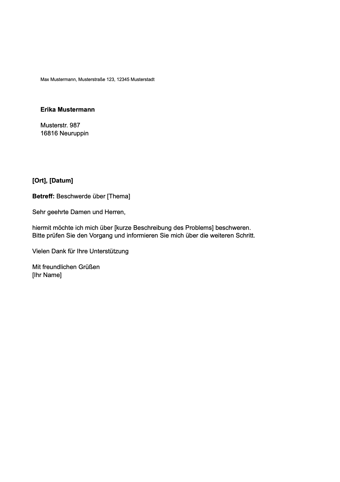 Vorlage: Beschwerde schreiben