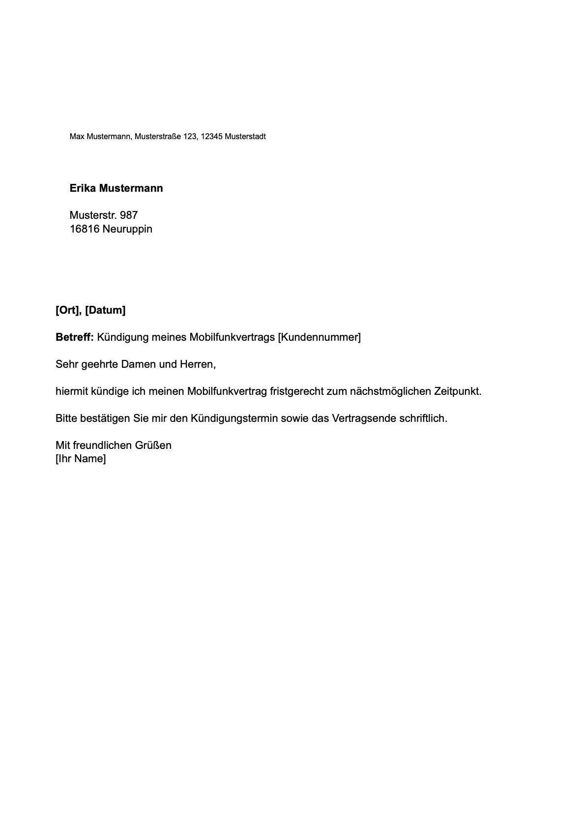 Mit dieser Vorlage kündigst du deinen Mobilfunkvertrag einfach und eindeutig.