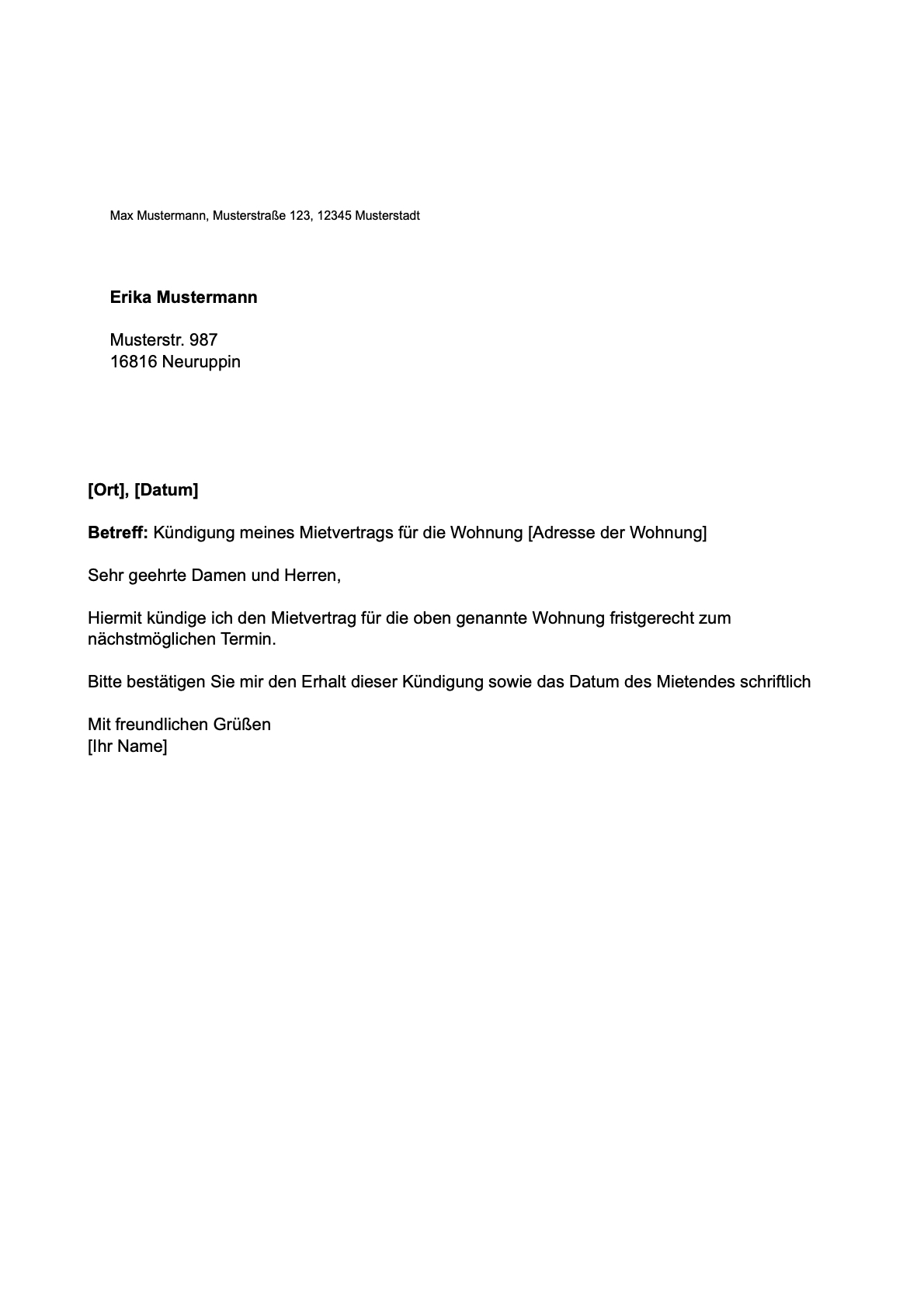 Nutze diese Vorlage, um dein Mietverhältnis fristgerecht und schriftlich zu kündigen Sie erfüllt alle formalen Anforderungen.